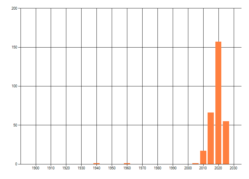 Het aantal atlasblokken (5x5 km) waarin de soort is gemeld binnen een periode van vijf jaar (vanaf 1980) of twintig jaar. Niet gecorrigeerd voor waarnemersinspanning en het aantal doorgegeven waarnemingen kan sterk variëren per periode, dus een trend in verspreiding kan hier niet direct uit worden afgelezen. Het opgegeven jaartal is het eerste jaar van de periode. Bron: gevalideerde waarnemingen uit de NDFF.