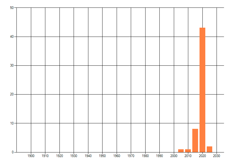 Het aantal atlasblokken (5x5 km) waarin de soort is gemeld binnen een periode van vijf jaar (vanaf 1980) of twintig jaar. Niet gecorrigeerd voor waarnemersinspanning en het aantal doorgegeven waarnemingen kan sterk variëren per periode, dus een trend in verspreiding kan hier niet direct uit worden afgelezen. Het opgegeven jaartal is het eerste jaar van de periode. Bron: gevalideerde waarnemingen uit de NDFF.