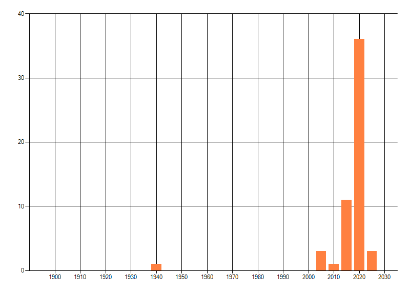Het aantal atlasblokken (5x5 km) waarin de soort is gemeld binnen een periode van vijf jaar (vanaf 1980) of twintig jaar. Niet gecorrigeerd voor waarnemersinspanning en het aantal doorgegeven waarnemingen kan sterk variëren per periode, dus een trend in verspreiding kan hier niet direct uit worden afgelezen. Het opgegeven jaartal is het eerste jaar van de periode. Bron: gevalideerde waarnemingen uit de NDFF.