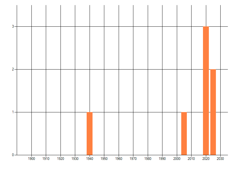 Het aantal atlasblokken (5x5 km) waarin de soort is gemeld binnen een periode van vijf jaar (vanaf 1980) of twintig jaar. Niet gecorrigeerd voor waarnemersinspanning en het aantal doorgegeven waarnemingen kan sterk variëren per periode, dus een trend in verspreiding kan hier niet direct uit worden afgelezen. Het opgegeven jaartal is het eerste jaar van de periode. Bron: gevalideerde waarnemingen uit de NDFF.