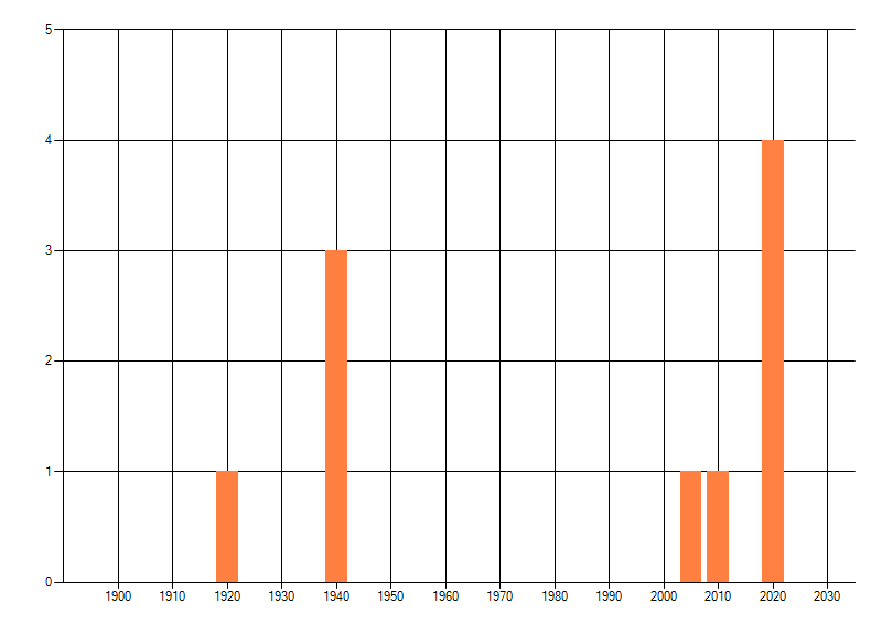 Het aantal atlasblokken (5x5 km) waarin de soort is gemeld binnen een periode van vijf jaar (vanaf 1980) of twintig jaar. Niet gecorrigeerd voor waarnemersinspanning en het aantal doorgegeven waarnemingen kan sterk variëren per periode, dus een trend in verspreiding kan hier niet direct uit worden afgelezen. Het opgegeven jaartal is het eerste jaar van de periode. Bron: gevalideerde waarnemingen uit de NDFF.