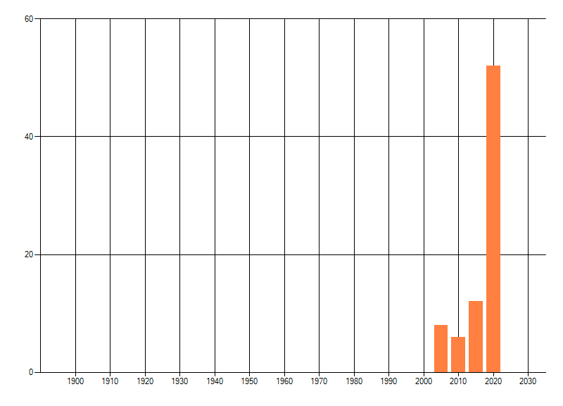 Het aantal atlasblokken (5x5 km) waarin de soort is gemeld binnen een periode van vijf jaar (vanaf 1980) of twintig jaar. Niet gecorrigeerd voor waarnemersinspanning en het aantal doorgegeven waarnemingen kan sterk variëren per periode, dus een trend in verspreiding kan hier niet direct uit worden afgelezen. Het opgegeven jaartal is het eerste jaar van de periode. Bron: gevalideerde waarnemingen uit de NDFF.