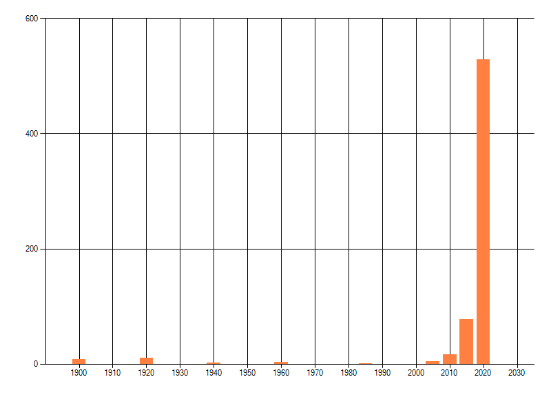 Het aantal atlasblokken (5x5 km) waarin de soort is gemeld binnen een periode van vijf jaar (vanaf 1980) of twintig jaar. Niet gecorrigeerd voor waarnemersinspanning en het aantal doorgegeven waarnemingen kan sterk variëren per periode, dus een trend in verspreiding kan hier niet direct uit worden afgelezen. Het opgegeven jaartal is het eerste jaar van de periode. Bron: gevalideerde waarnemingen uit de NDFF.