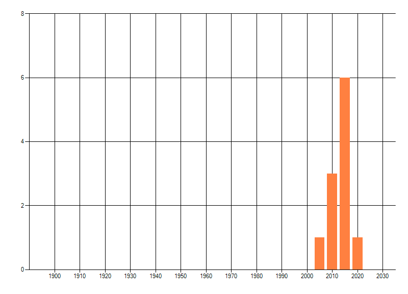 Het aantal atlasblokken (5x5 km) waarin de soort is gemeld binnen een periode van vijf jaar (vanaf 1980) of twintig jaar. Niet gecorrigeerd voor waarnemersinspanning en het aantal doorgegeven waarnemingen kan sterk variëren per periode, dus een trend in verspreiding kan hier niet direct uit worden afgelezen. Het opgegeven jaartal is het eerste jaar van de periode. Bron: gevalideerde waarnemingen uit de NDFF.