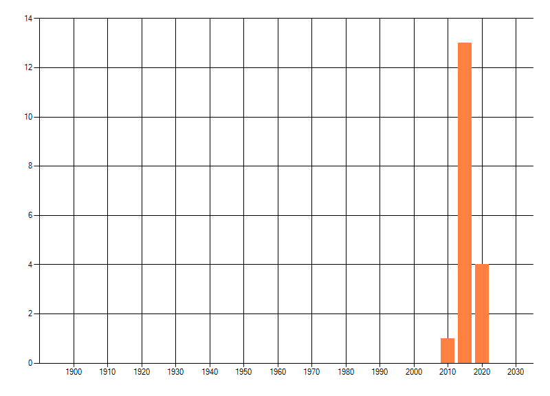 Het aantal atlasblokken (5x5 km) waarin de soort is gemeld binnen een periode van vijf jaar (vanaf 1980) of twintig jaar. Niet gecorrigeerd voor waarnemersinspanning en het aantal doorgegeven waarnemingen kan sterk variëren per periode, dus een trend in verspreiding kan hier niet direct uit worden afgelezen. Het opgegeven jaartal is het eerste jaar van de periode. Bron: gevalideerde waarnemingen uit de NDFF.