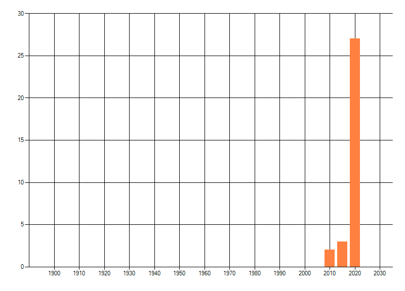 Het aantal atlasblokken (5x5 km) waarin de soort is gemeld binnen een periode van vijf jaar (vanaf 1980) of twintig jaar. Niet gecorrigeerd voor waarnemersinspanning en het aantal doorgegeven waarnemingen kan sterk variëren per periode, dus een trend in verspreiding kan hier niet direct uit worden afgelezen. Het opgegeven jaartal is het eerste jaar van de periode. Bron: gevalideerde waarnemingen uit de NDFF.