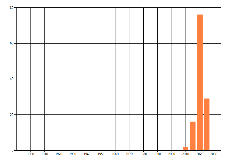 Het aantal atlasblokken (5x5 km) waarin de soort is gemeld binnen een periode van vijf jaar (vanaf 1980) of twintig jaar. Niet gecorrigeerd voor waarnemersinspanning en het aantal doorgegeven waarnemingen kan sterk variëren per periode, dus een trend in verspreiding kan hier niet direct uit worden afgelezen. Het opgegeven jaartal is het eerste jaar van de periode. Bron: gevalideerde waarnemingen uit de NDFF.