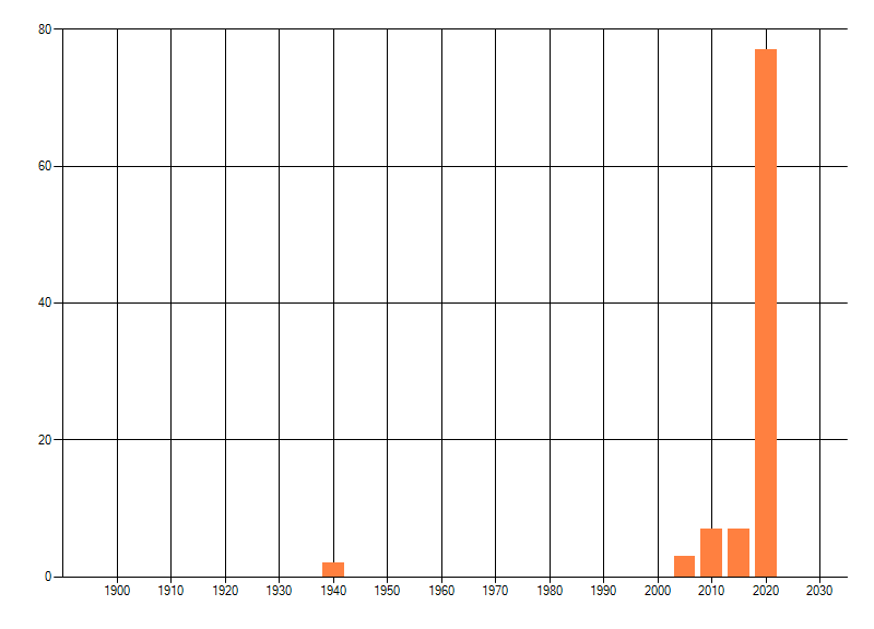 Het aantal atlasblokken (5x5 km) waarin de soort is gemeld binnen een periode van vijf jaar (vanaf 1980) of twintig jaar. Niet gecorrigeerd voor waarnemersinspanning en het aantal doorgegeven waarnemingen kan sterk variëren per periode, dus een trend in verspreiding kan hier niet direct uit worden afgelezen. Het opgegeven jaartal is het eerste jaar van de periode. Bron: gevalideerde waarnemingen uit de NDFF.