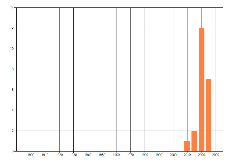Het aantal atlasblokken (5x5 km) waarin de soort is gemeld binnen een periode van vijf jaar (vanaf 1980) of twintig jaar. Niet gecorrigeerd voor waarnemersinspanning en het aantal doorgegeven waarnemingen kan sterk variëren per periode, dus een trend in verspreiding kan hier niet direct uit worden afgelezen. Het opgegeven jaartal is het eerste jaar van de periode. Bron: gevalideerde waarnemingen uit de NDFF.