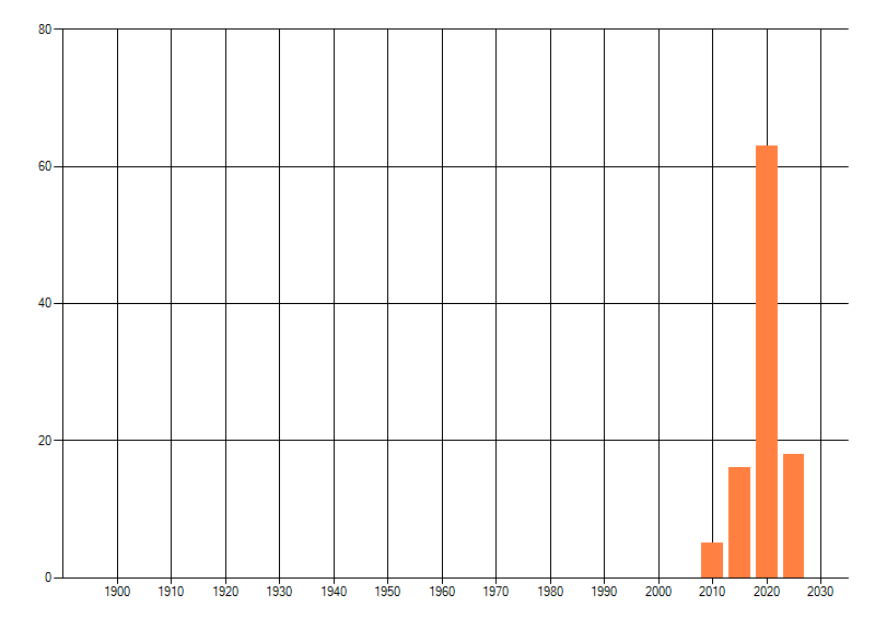 Het aantal atlasblokken (5x5 km) waarin de soort is gemeld binnen een periode van vijf jaar (vanaf 1980) of twintig jaar. Niet gecorrigeerd voor waarnemersinspanning en het aantal doorgegeven waarnemingen kan sterk variëren per periode, dus een trend in verspreiding kan hier niet direct uit worden afgelezen. Het opgegeven jaartal is het eerste jaar van de periode. Bron: gevalideerde waarnemingen uit de NDFF.