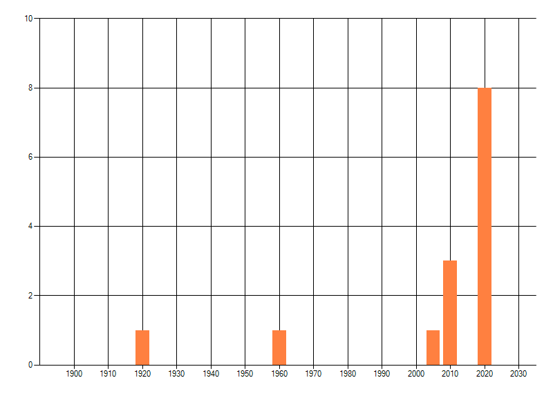 Het aantal atlasblokken (5x5 km) waarin de soort is gemeld binnen een periode van vijf jaar (vanaf 1980) of twintig jaar. Niet gecorrigeerd voor waarnemersinspanning en het aantal doorgegeven waarnemingen kan sterk variëren per periode, dus een trend in verspreiding kan hier niet direct uit worden afgelezen. Het opgegeven jaartal is het eerste jaar van de periode. Bron: gevalideerde waarnemingen uit de NDFF.