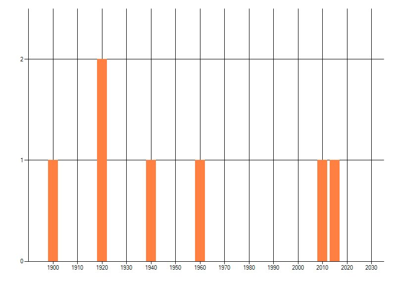 Het aantal atlasblokken (5x5 km) waarin de soort is gemeld binnen een periode van vijf jaar (vanaf 1980) of twintig jaar. Niet gecorrigeerd voor waarnemersinspanning en het aantal doorgegeven waarnemingen kan sterk variëren per periode, dus een trend in verspreiding kan hier niet direct uit worden afgelezen. Het opgegeven jaartal is het eerste jaar van de periode. Bron: gevalideerde waarnemingen uit de NDFF.