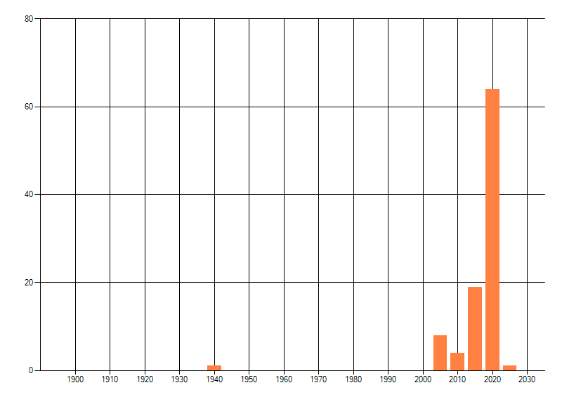 Het aantal atlasblokken (5x5 km) waarin de soort is gemeld binnen een periode van vijf jaar (vanaf 1980) of twintig jaar. Niet gecorrigeerd voor waarnemersinspanning en het aantal doorgegeven waarnemingen kan sterk variëren per periode, dus een trend in verspreiding kan hier niet direct uit worden afgelezen. Het opgegeven jaartal is het eerste jaar van de periode. Bron: gevalideerde waarnemingen uit de NDFF.