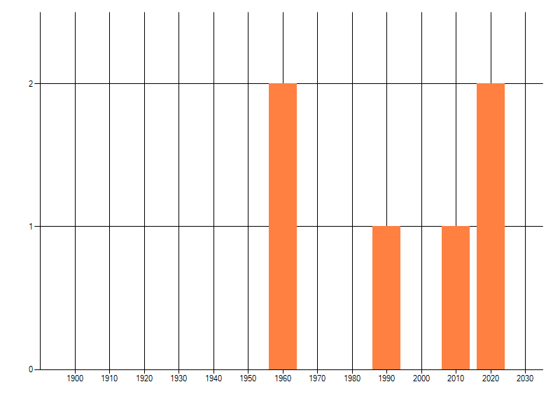 Het aantal atlasblokken (5x5 km) waarin de soort is gemeld binnen een periode van vijf jaar (vanaf 1980) of twintig jaar. Niet gecorrigeerd voor waarnemersinspanning en het aantal doorgegeven waarnemingen kan sterk variëren per periode, dus een trend in verspreiding kan hier niet direct uit worden afgelezen. Het opgegeven jaartal is het eerste jaar van de periode. Bron: gevalideerde waarnemingen uit de NDFF.