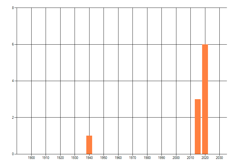 Het aantal atlasblokken (5x5 km) waarin de soort is gemeld binnen een periode van vijf jaar (vanaf 1980) of twintig jaar. Niet gecorrigeerd voor waarnemersinspanning en het aantal doorgegeven waarnemingen kan sterk variëren per periode, dus een trend in verspreiding kan hier niet direct uit worden afgelezen. Het opgegeven jaartal is het eerste jaar van de periode. Bron: gevalideerde waarnemingen uit de NDFF.