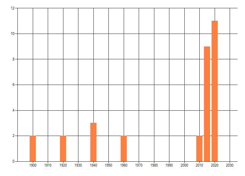 Het aantal atlasblokken (5x5 km) waarin de soort is gemeld binnen een periode van vijf jaar (vanaf 1980) of twintig jaar. Niet gecorrigeerd voor waarnemersinspanning en het aantal doorgegeven waarnemingen kan sterk variëren per periode, dus een trend in verspreiding kan hier niet direct uit worden afgelezen. Het opgegeven jaartal is het eerste jaar van de periode. Bron: gevalideerde waarnemingen uit de NDFF.
