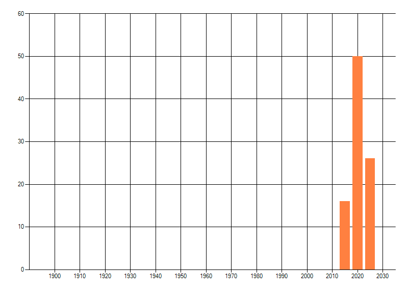 Het aantal atlasblokken (5x5 km) waarin de soort is gemeld binnen een periode van vijf jaar (vanaf 1980) of twintig jaar. Niet gecorrigeerd voor waarnemersinspanning en het aantal doorgegeven waarnemingen kan sterk variëren per periode, dus een trend in verspreiding kan hier niet direct uit worden afgelezen. Het opgegeven jaartal is het eerste jaar van de periode. Bron: gevalideerde waarnemingen uit de NDFF.