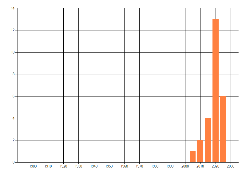 Het aantal atlasblokken (5x5 km) waarin de soort is gemeld binnen een periode van vijf jaar (vanaf 1980) of twintig jaar. Niet gecorrigeerd voor waarnemersinspanning en het aantal doorgegeven waarnemingen kan sterk variëren per periode, dus een trend in verspreiding kan hier niet direct uit worden afgelezen. Het opgegeven jaartal is het eerste jaar van de periode. Bron: gevalideerde waarnemingen uit de NDFF.