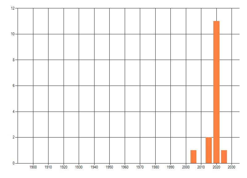 Het aantal atlasblokken (5x5 km) waarin de soort is gemeld binnen een periode van vijf jaar (vanaf 1980) of twintig jaar. Niet gecorrigeerd voor waarnemersinspanning en het aantal doorgegeven waarnemingen kan sterk variëren per periode, dus een trend in verspreiding kan hier niet direct uit worden afgelezen. Het opgegeven jaartal is het eerste jaar van de periode. Bron: gevalideerde waarnemingen uit de NDFF.