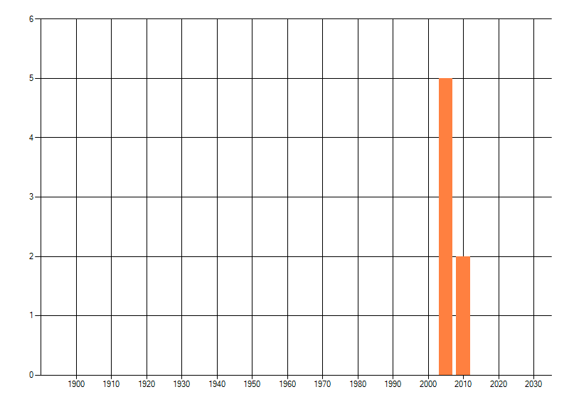 Het aantal atlasblokken (5x5 km) waarin de soort is gemeld binnen een periode van vijf jaar (vanaf 1980) of twintig jaar. Niet gecorrigeerd voor waarnemersinspanning en het aantal doorgegeven waarnemingen kan sterk variëren per periode, dus een trend in verspreiding kan hier niet direct uit worden afgelezen. Het opgegeven jaartal is het eerste jaar van de periode. Bron: gevalideerde waarnemingen uit de NDFF.