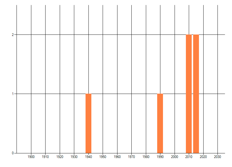 Het aantal atlasblokken (5x5 km) waarin de soort is gemeld binnen een periode van vijf jaar (vanaf 1980) of twintig jaar. Niet gecorrigeerd voor waarnemersinspanning en het aantal doorgegeven waarnemingen kan sterk variëren per periode, dus een trend in verspreiding kan hier niet direct uit worden afgelezen. Het opgegeven jaartal is het eerste jaar van de periode. Bron: gevalideerde waarnemingen uit de NDFF.