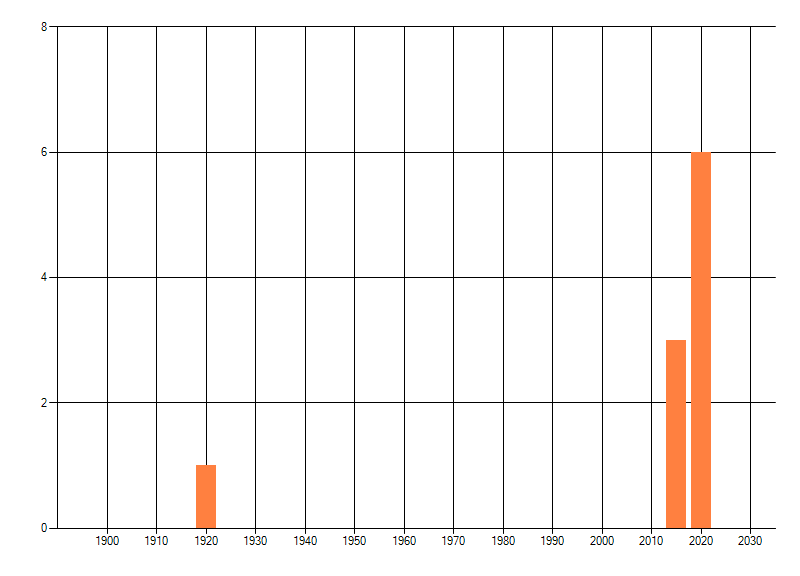 Het aantal atlasblokken (5x5 km) waarin de soort is gemeld binnen een periode van vijf jaar (vanaf 1980) of twintig jaar. Niet gecorrigeerd voor waarnemersinspanning en het aantal doorgegeven waarnemingen kan sterk variëren per periode, dus een trend in verspreiding kan hier niet direct uit worden afgelezen. Het opgegeven jaartal is het eerste jaar van de periode. Bron: gevalideerde waarnemingen uit de NDFF.