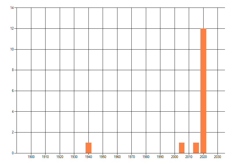 Het aantal atlasblokken (5x5 km) waarin de soort is gemeld binnen een periode van vijf jaar (vanaf 1980) of twintig jaar. Niet gecorrigeerd voor waarnemersinspanning en het aantal doorgegeven waarnemingen kan sterk variëren per periode, dus een trend in verspreiding kan hier niet direct uit worden afgelezen. Het opgegeven jaartal is het eerste jaar van de periode. Bron: gevalideerde waarnemingen uit de NDFF.