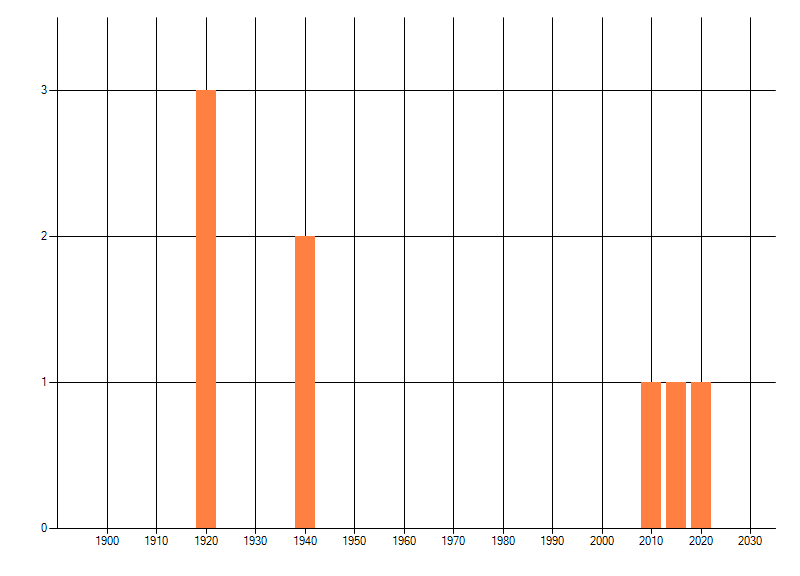 Het aantal atlasblokken (5x5 km) waarin de soort is gemeld binnen een periode van vijf jaar (vanaf 1980) of twintig jaar. Niet gecorrigeerd voor waarnemersinspanning en het aantal doorgegeven waarnemingen kan sterk variëren per periode, dus een trend in verspreiding kan hier niet direct uit worden afgelezen. Het opgegeven jaartal is het eerste jaar van de periode. Bron: gevalideerde waarnemingen uit de NDFF.