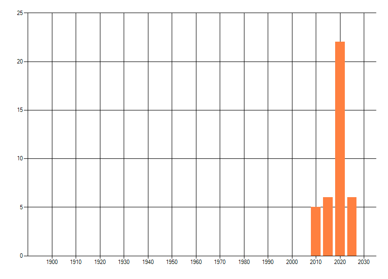 Het aantal atlasblokken (5x5 km) waarin de soort is gemeld binnen een periode van vijf jaar (vanaf 1980) of twintig jaar. Niet gecorrigeerd voor waarnemersinspanning en het aantal doorgegeven waarnemingen kan sterk variëren per periode, dus een trend in verspreiding kan hier niet direct uit worden afgelezen. Het opgegeven jaartal is het eerste jaar van de periode. Bron: gevalideerde waarnemingen uit de NDFF.