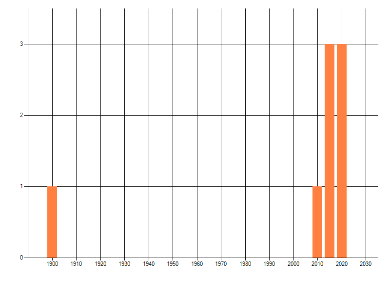 dus een trend in verspreiding kan hier niet direct uit worden afgelezen. Het opgegeven jaartal is het eerste jaar van de
