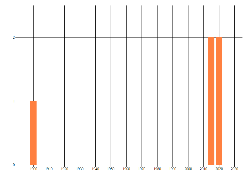Het aantal atlasblokken (5x5 km) waarin de soort is gemeld binnen een periode van vijf jaar (vanaf 1980) of twintig jaar. Niet gecorrigeerd voor waarnemersinspanning en het aantal doorgegeven waarnemingen kan sterk variëren per periode, dus een trend in verspreiding kan hier niet direct uit worden afgelezen. Het opgegeven jaartal is het eerste jaar van de periode. Bron: gevalideerde waarnemingen uit de NDFF.