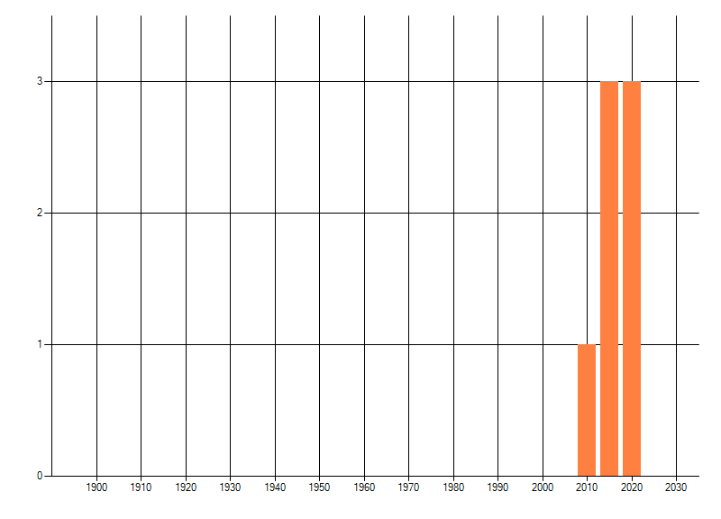 Het aantal atlasblokken (5x5 km) waarin de soort is gemeld binnen een periode van vijf jaar (vanaf 1980) of twintig jaar. Niet gecorrigeerd voor waarnemersinspanning en het aantal doorgegeven waarnemingen kan sterk variëren per periode, dus een trend in verspreiding kan hier niet direct uit worden afgelezen. Het opgegeven jaartal is het eerste jaar van de periode. Bron: gevalideerde waarnemingen uit de NDFF.