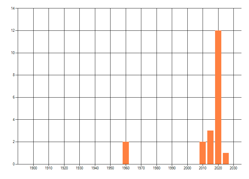 Het aantal atlasblokken (5x5 km) waarin de soort is gemeld binnen een periode van vijf jaar (vanaf 1980) of twintig jaar. Niet gecorrigeerd voor waarnemersinspanning en het aantal doorgegeven waarnemingen kan sterk variëren per periode, dus een trend in verspreiding kan hier niet direct uit worden afgelezen. Het opgegeven jaartal is het eerste jaar van de periode. Bron: gevalideerde waarnemingen uit de NDFF.