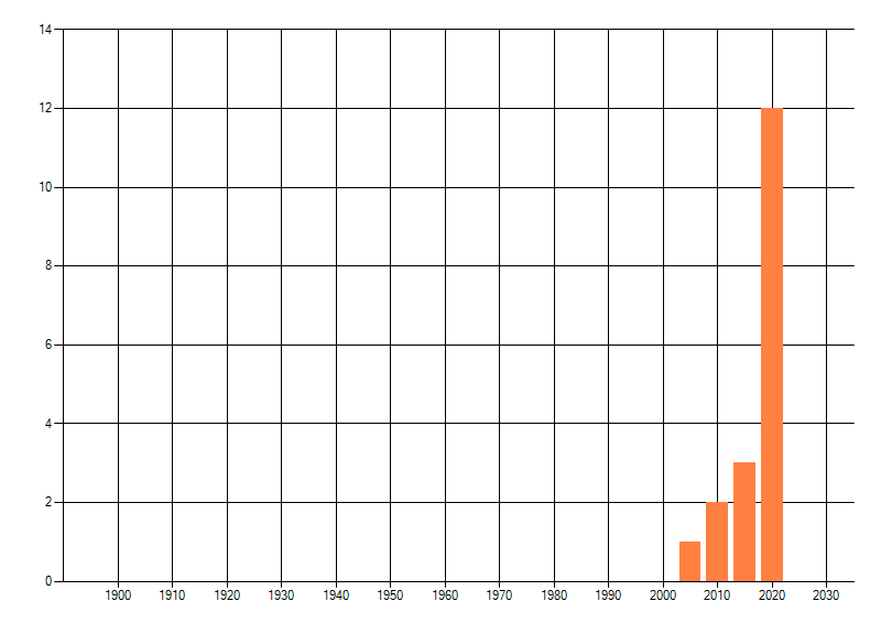 Het aantal atlasblokken (5x5 km) waarin de soort is gemeld binnen een periode van vijf jaar (vanaf 1980) of twintig jaar. Niet gecorrigeerd voor waarnemersinspanning en het aantal doorgegeven waarnemingen kan sterk variëren per periode, dus een trend in verspreiding kan hier niet direct uit worden afgelezen. Het opgegeven jaartal is het eerste jaar van de periode. Bron: gevalideerde waarnemingen uit de NDFF.