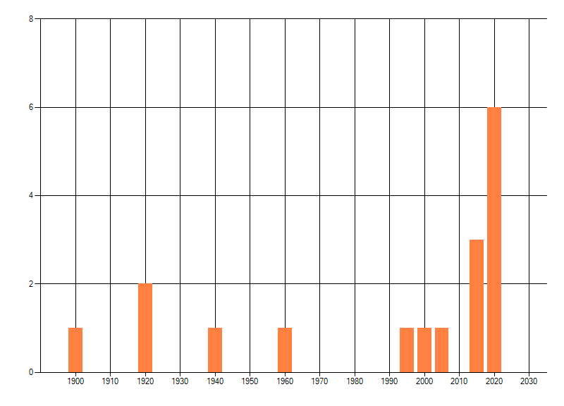 Het aantal atlasblokken (5x5 km) waarin de soort is gemeld binnen een periode van vijf jaar (vanaf 1980) of twintig jaar. Niet gecorrigeerd voor waarnemersinspanning en het aantal doorgegeven waarnemingen kan sterk variëren per periode, dus een trend in verspreiding kan hier niet direct uit worden afgelezen. Het opgegeven jaartal is het eerste jaar van de periode. Bron: gevalideerde waarnemingen uit de NDFF.