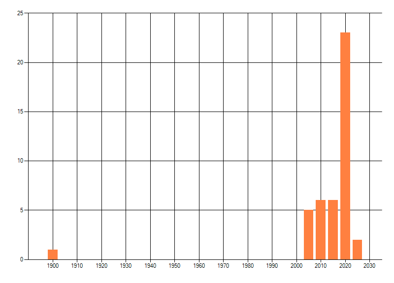 Het aantal atlasblokken (5x5 km) waarin de soort is gemeld binnen een periode van vijf jaar (vanaf 1980) of twintig jaar. Niet gecorrigeerd voor waarnemersinspanning en het aantal doorgegeven waarnemingen kan sterk variëren per periode, dus een trend in verspreiding kan hier niet direct uit worden afgelezen. Het opgegeven jaartal is het eerste jaar van de periode. Bron: gevalideerde waarnemingen uit de NDFF.