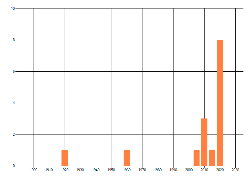 Het aantal atlasblokken (5x5 km) waarin de soort is gemeld binnen een periode van vijf jaar (vanaf 1980) of twintig jaar. Niet gecorrigeerd voor waarnemersinspanning en het aantal doorgegeven waarnemingen kan sterk variëren per periode, dus een trend in verspreiding kan hier niet direct uit worden afgelezen. Het opgegeven jaartal is het eerste jaar van de periode. Bron: gevalideerde waarnemingen uit de NDFF.