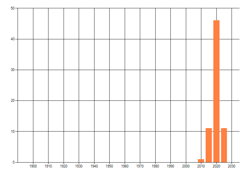 Het aantal atlasblokken (5x5 km) waarin de soort is gemeld binnen een periode van vijf jaar (vanaf 1980) of twintig jaar. Niet gecorrigeerd voor waarnemersinspanning en het aantal doorgegeven waarnemingen kan sterk variëren per periode, dus een trend in verspreiding kan hier niet direct uit worden afgelezen. Het opgegeven jaartal is het eerste jaar van de periode. Bron: gevalideerde waarnemingen uit de NDFF.