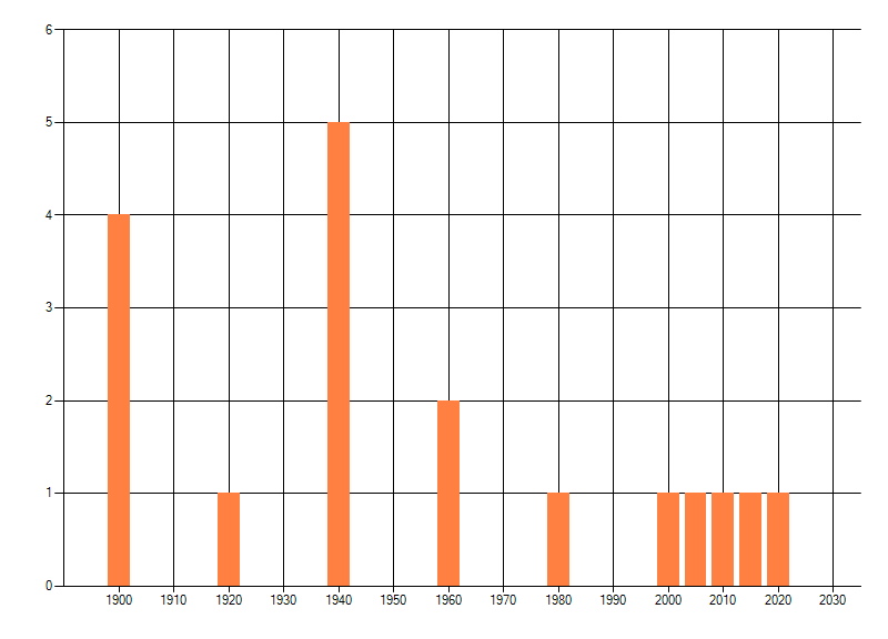 Het aantal atlasblokken (5x5 km) waarin de soort is gemeld binnen een periode van vijf jaar (vanaf 1980) of twintig jaar. Niet gecorrigeerd voor waarnemersinspanning en het aantal doorgegeven waarnemingen kan sterk variëren per periode, dus een trend in verspreiding kan hier niet direct uit worden afgelezen. Het opgegeven jaartal is het eerste jaar van de periode. Bron: gevalideerde waarnemingen uit de NDFF.