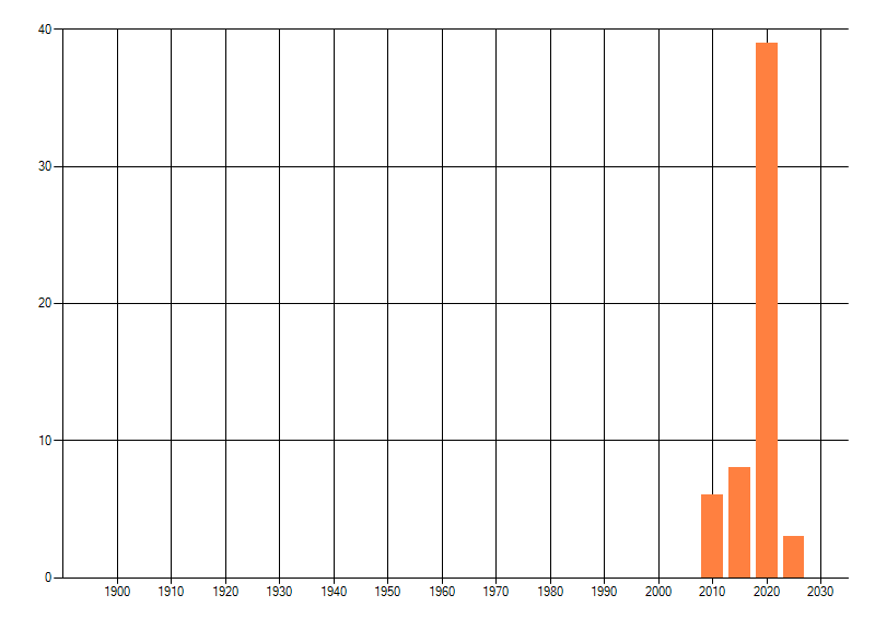 Het aantal atlasblokken (5x5 km) waarin de soort is gemeld binnen een periode van vijf jaar (vanaf 1980) of twintig jaar. Niet gecorrigeerd voor waarnemersinspanning en het aantal doorgegeven waarnemingen kan sterk variëren per periode, dus een trend in verspreiding kan hier niet direct uit worden afgelezen. Het opgegeven jaartal is het eerste jaar van de periode. Bron: gevalideerde waarnemingen uit de NDFF.