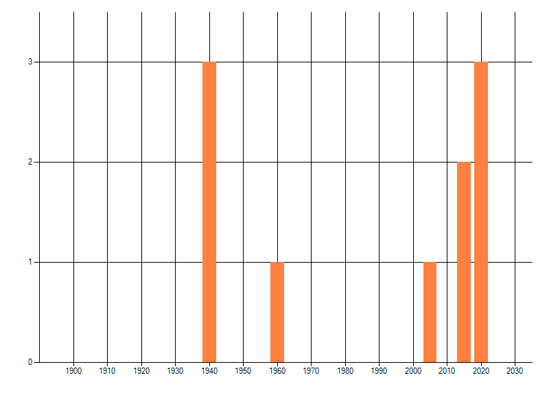 Het aantal atlasblokken (5x5 km) waarin de soort is gemeld binnen een periode van vijf jaar (vanaf 1980) of twintig jaar. Niet gecorrigeerd voor waarnemersinspanning en het aantal doorgegeven waarnemingen kan sterk variëren per periode, dus een trend in verspreiding kan hier niet direct uit worden afgelezen. Het opgegeven jaartal is het eerste jaar van de periode. Bron: gevalideerde waarnemingen uit de NDFF.
