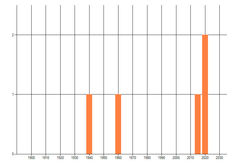 Het aantal atlasblokken (5x5 km) waarin de soort is gemeld binnen een periode van vijf jaar (vanaf 1980) of twintig jaar. Niet gecorrigeerd voor waarnemersinspanning en het aantal doorgegeven waarnemingen kan sterk variëren per periode, dus een trend in verspreiding kan hier niet direct uit worden afgelezen. Het opgegeven jaartal is het eerste jaar van de periode. Bron: gevalideerde waarnemingen uit de NDFF.