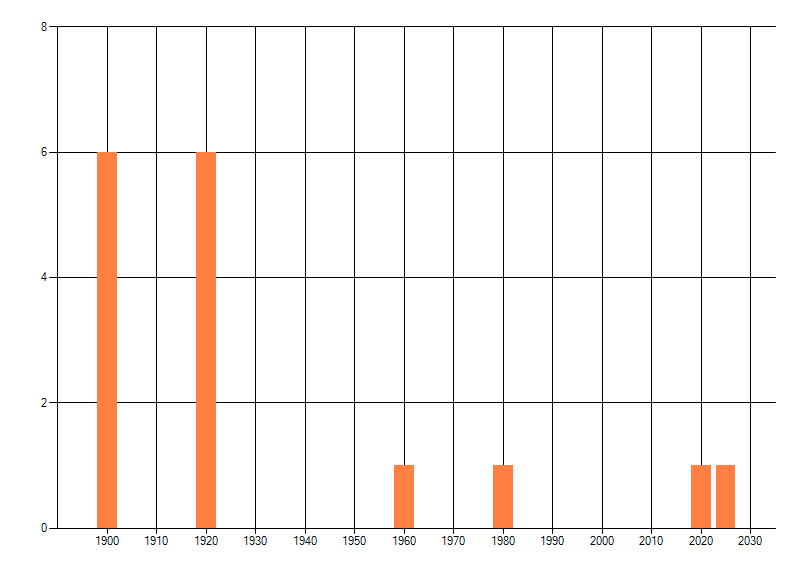 Het aantal atlasblokken (5x5 km) waarin de soort is gemeld binnen een periode van vijf jaar (vanaf 1980) of twintig jaar. Niet gecorrigeerd voor waarnemersinspanning en het aantal doorgegeven waarnemingen kan sterk variëren per periode, dus een trend in verspreiding kan hier niet direct uit worden afgelezen. Het opgegeven jaartal is het eerste jaar van de periode. Bron: gevalideerde waarnemingen uit de NDFF.