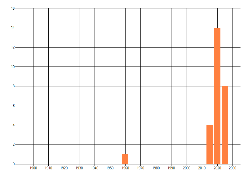 Het aantal atlasblokken (5x5 km) waarin de soort is gemeld binnen een periode van vijf jaar (vanaf 1980) of twintig jaar. Niet gecorrigeerd voor waarnemersinspanning en het aantal doorgegeven waarnemingen kan sterk variëren per periode, dus een trend in verspreiding kan hier niet direct uit worden afgelezen. Het opgegeven jaartal is het eerste jaar van de periode. Bron: gevalideerde waarnemingen uit de NDFF.