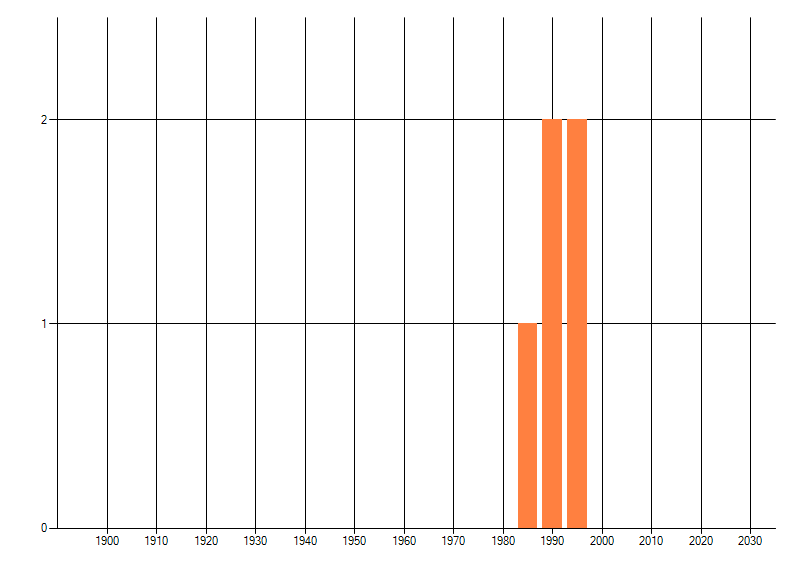 Het aantal atlasblokken (5x5 km) waarin de soort is gemeld binnen een periode van vijf jaar (vanaf 1980) of twintig jaar. Niet gecorrigeerd voor waarnemersinspanning en het aantal doorgegeven waarnemingen kan sterk variëren per periode, dus een trend in verspreiding kan hier niet direct uit worden afgelezen. Het opgegeven jaartal is het eerste jaar van de periode. Bron: gevalideerde waarnemingen uit de NDFF.