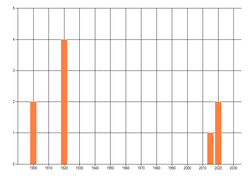 Het aantal atlasblokken (5x5 km) waarin de soort is gemeld binnen een periode van vijf jaar (vanaf 1980) of twintig jaar. Niet gecorrigeerd voor waarnemersinspanning en het aantal doorgegeven waarnemingen kan sterk variëren per periode, dus een trend in verspreiding kan hier niet direct uit worden afgelezen. Het opgegeven jaartal is het eerste jaar van de periode. Bron: gevalideerde waarnemingen uit de NDFF.
