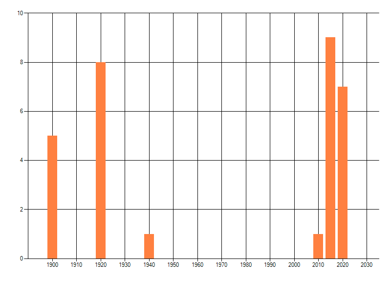 Het aantal atlasblokken (5x5 km) waarin de soort is gemeld binnen een periode van vijf jaar (vanaf 1980) of twintig jaar. Niet gecorrigeerd voor waarnemersinspanning en het aantal doorgegeven waarnemingen kan sterk variëren per periode, dus een trend in verspreiding kan hier niet direct uit worden afgelezen. Het opgegeven jaartal is het eerste jaar van de periode. Bron: gevalideerde waarnemingen uit de NDFF.