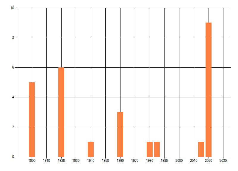Het aantal atlasblokken (5x5 km) waarin de soort is gemeld binnen een periode van vijf jaar (vanaf 1980) of twintig jaar. Niet gecorrigeerd voor waarnemersinspanning en het aantal doorgegeven waarnemingen kan sterk variëren per periode, dus een trend in verspreiding kan hier niet direct uit worden afgelezen. Het opgegeven jaartal is het eerste jaar van de periode. Bron: gevalideerde waarnemingen uit de NDFF.