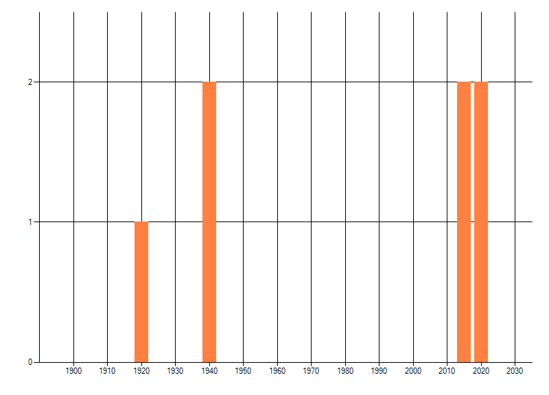 Het aantal atlasblokken (5x5 km) waarin de soort is gemeld binnen een periode van vijf jaar (vanaf 1980) of twintig jaar. Niet gecorrigeerd voor waarnemersinspanning en het aantal doorgegeven waarnemingen kan sterk variëren per periode, dus een trend in verspreiding kan hier niet direct uit worden afgelezen. Het opgegeven jaartal is het eerste jaar van de periode. Bron: gevalideerde waarnemingen uit de NDFF.