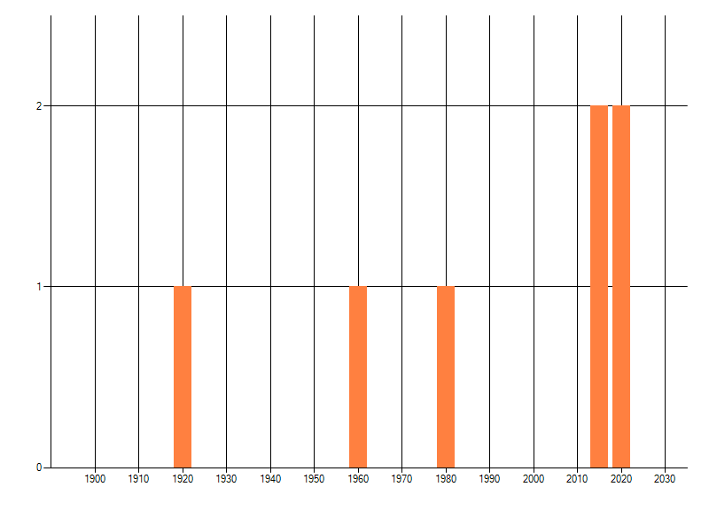 Het aantal atlasblokken (5x5 km) waarin de soort is gemeld binnen een periode van vijf jaar (vanaf 1980) of twintig jaar. Niet gecorrigeerd voor waarnemersinspanning en het aantal doorgegeven waarnemingen kan sterk variëren per periode, dus een trend in verspreiding kan hier niet direct uit worden afgelezen. Het opgegeven jaartal is het eerste jaar van de periode. Bron: gevalideerde waarnemingen uit de NDFF.